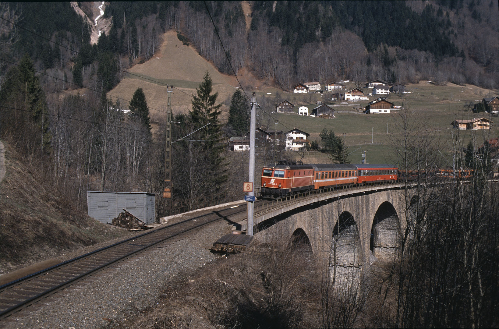 ÖBB 1044 022 (13.03.1990, b. Dalaas, Hölltobel-Viadukt)