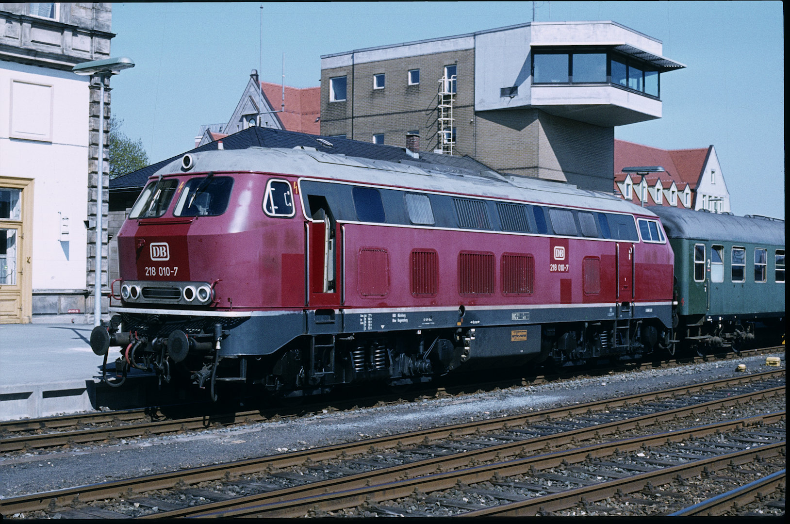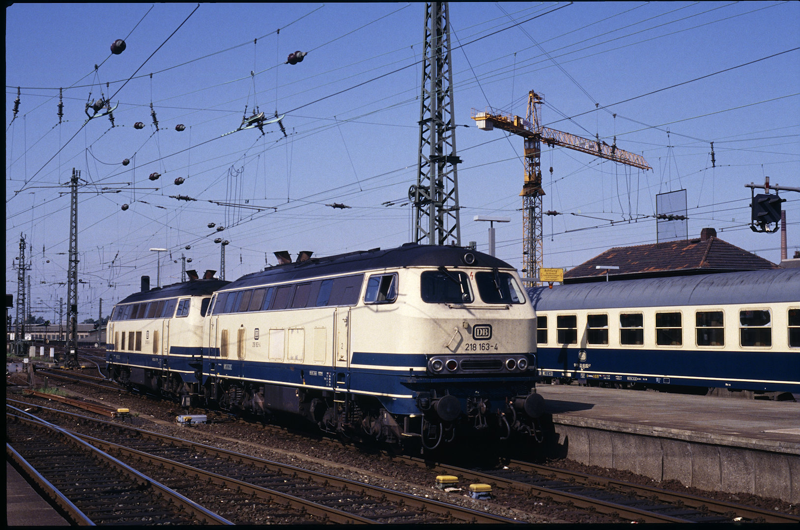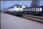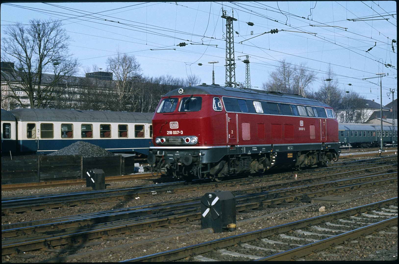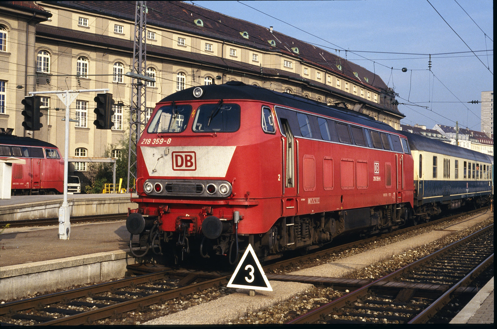 DB 218 447 (1980, München-Donnersbergerbrücke, (mit 210 xxx), info:Lok ist unscharf) |