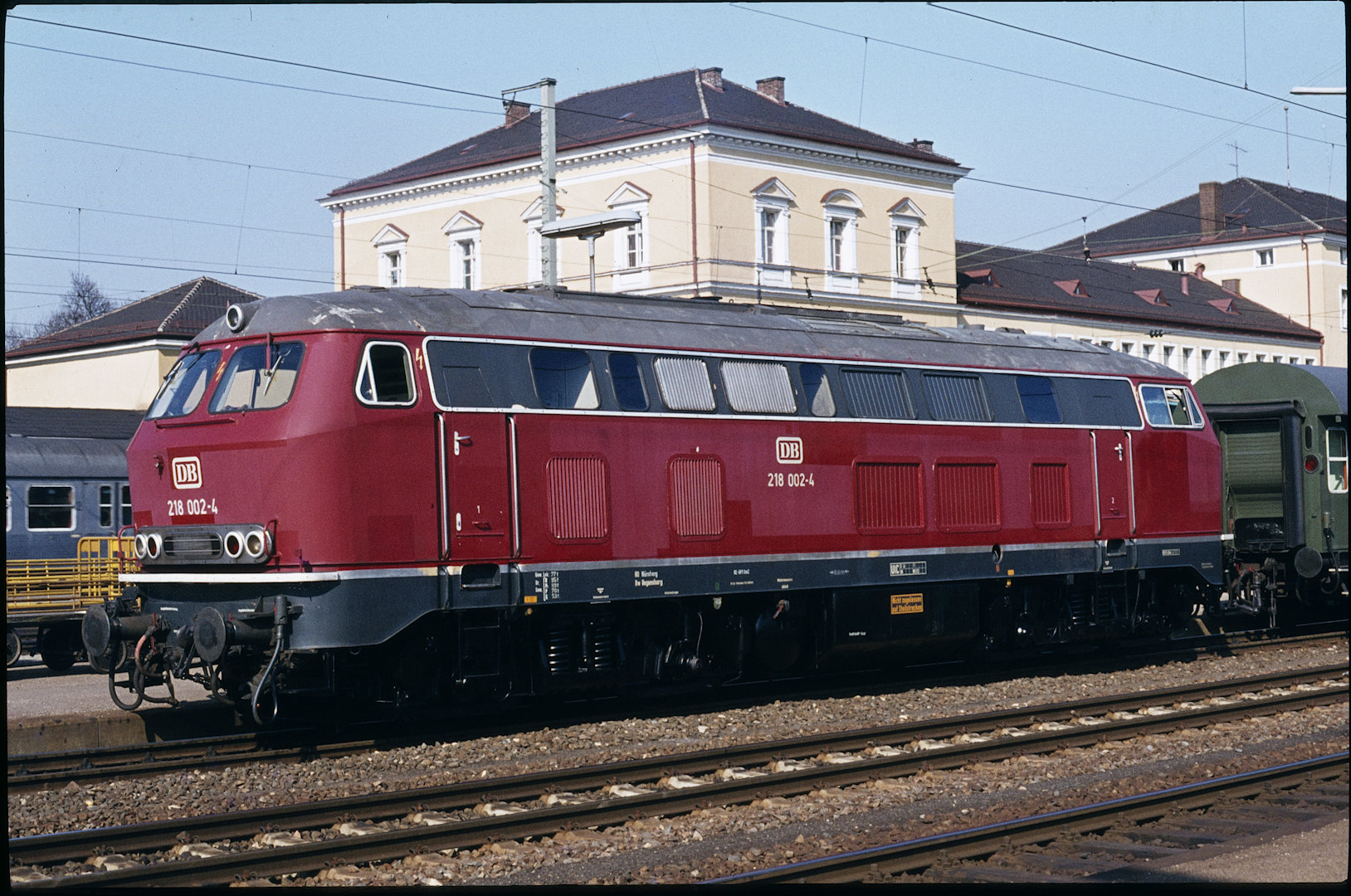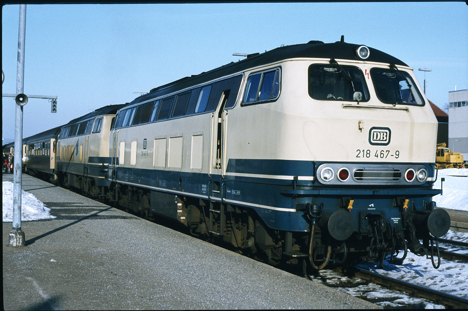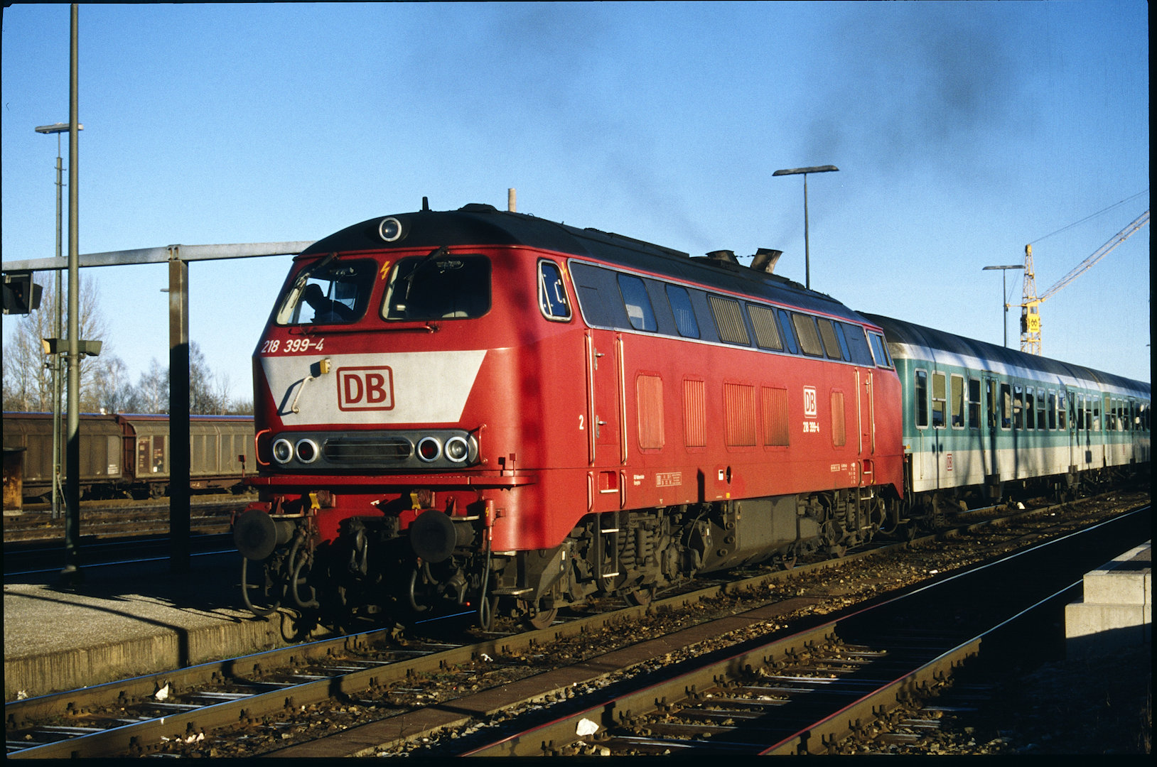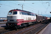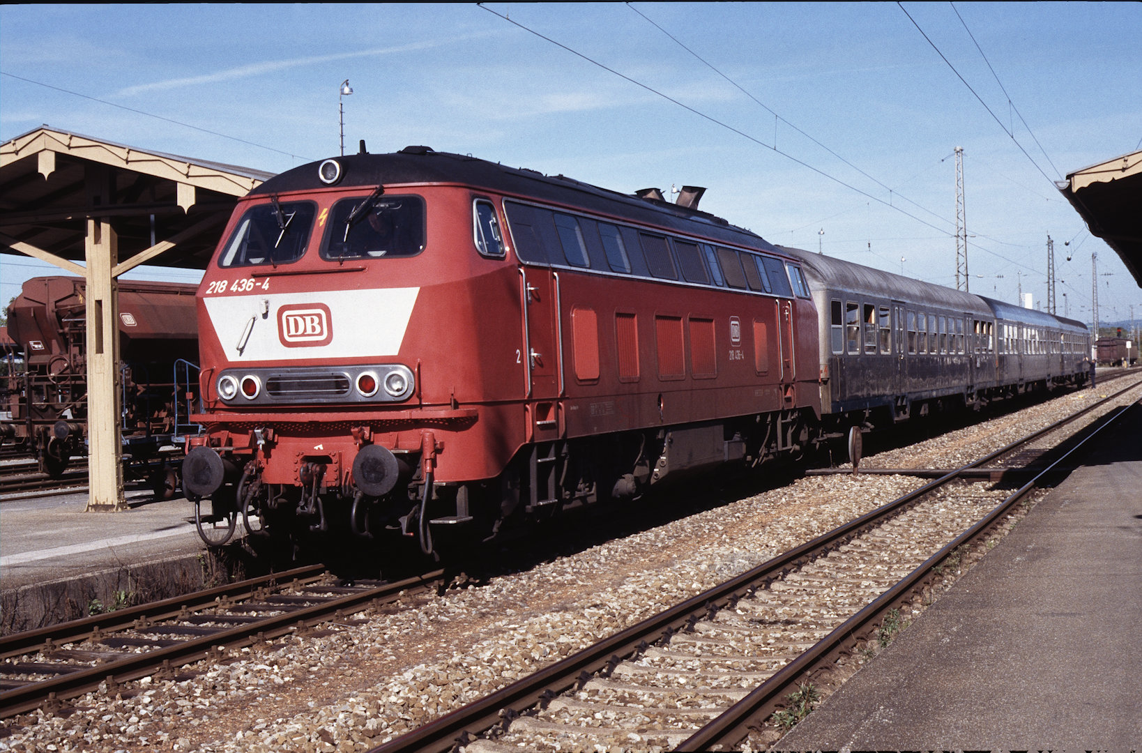 DB 218 447 (1980, München-Donnersbergerbrücke, (mit 210 xxx), info:Lok ist unscharf) |