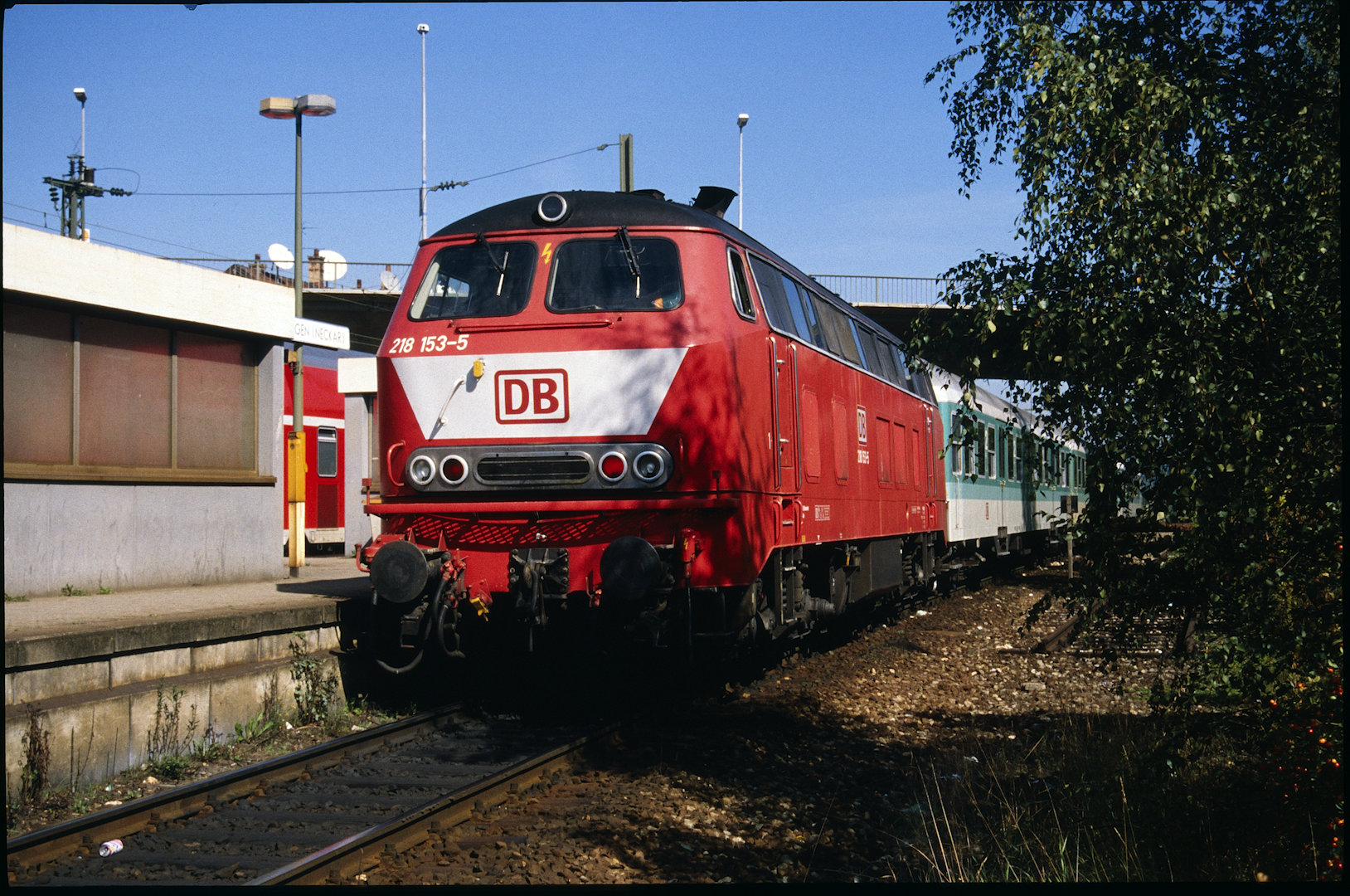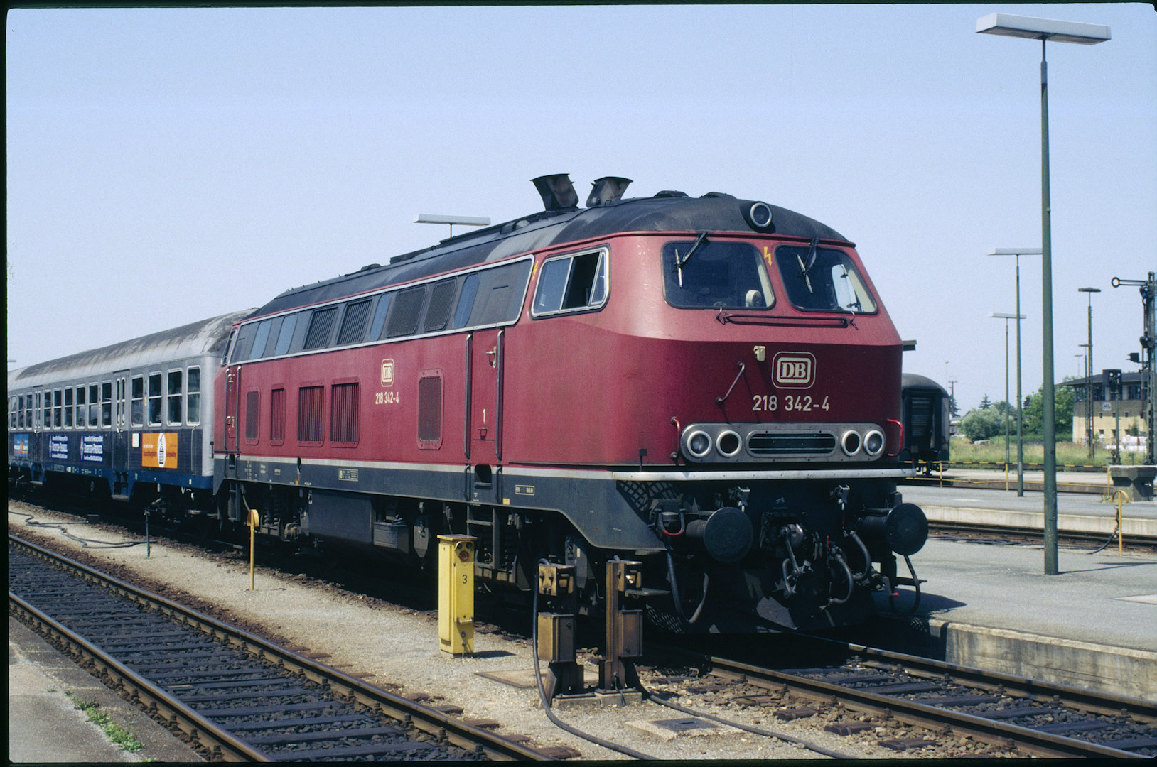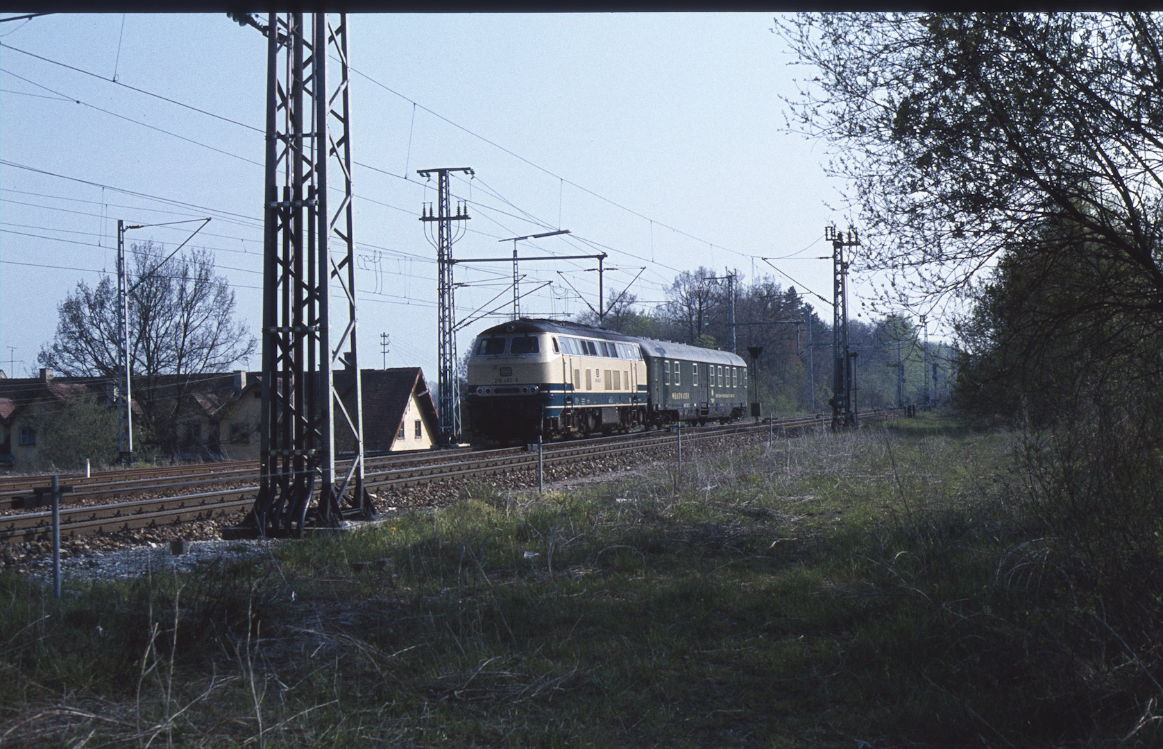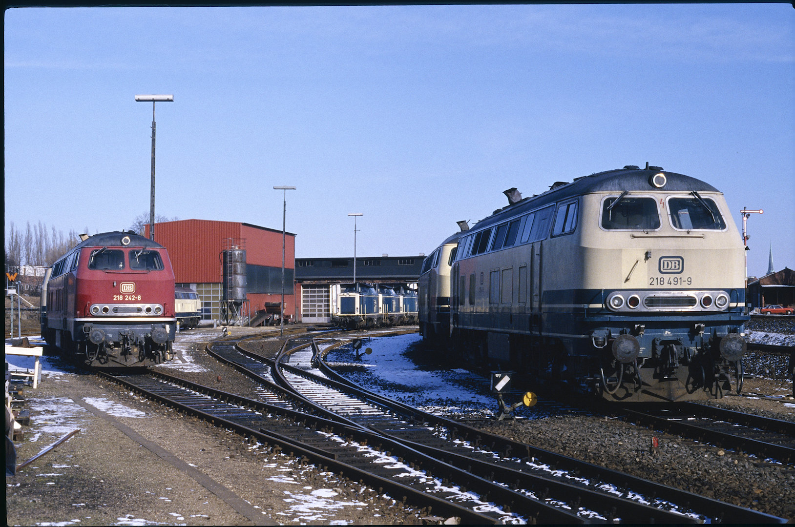DB 218 447 (1980, München-Donnersbergerbrücke, (mit 210 xxx), info:Lok ist unscharf) |