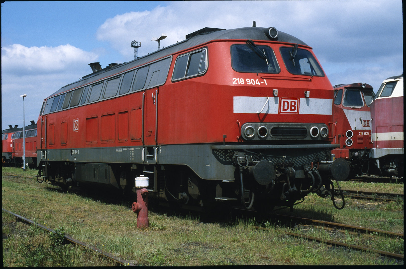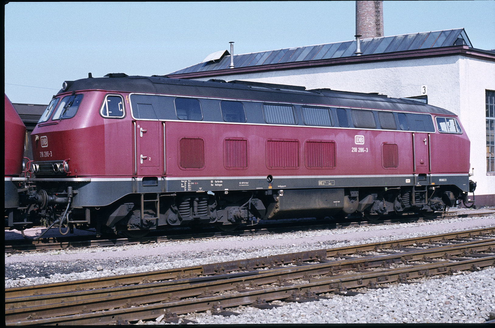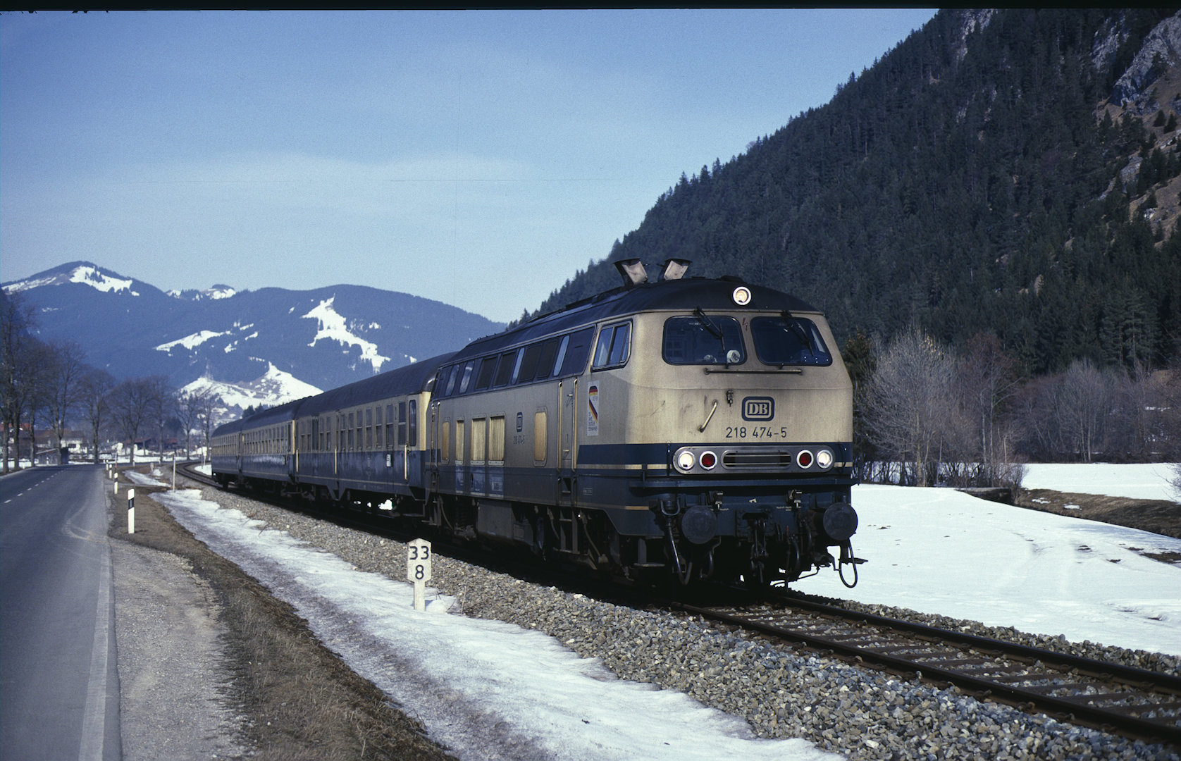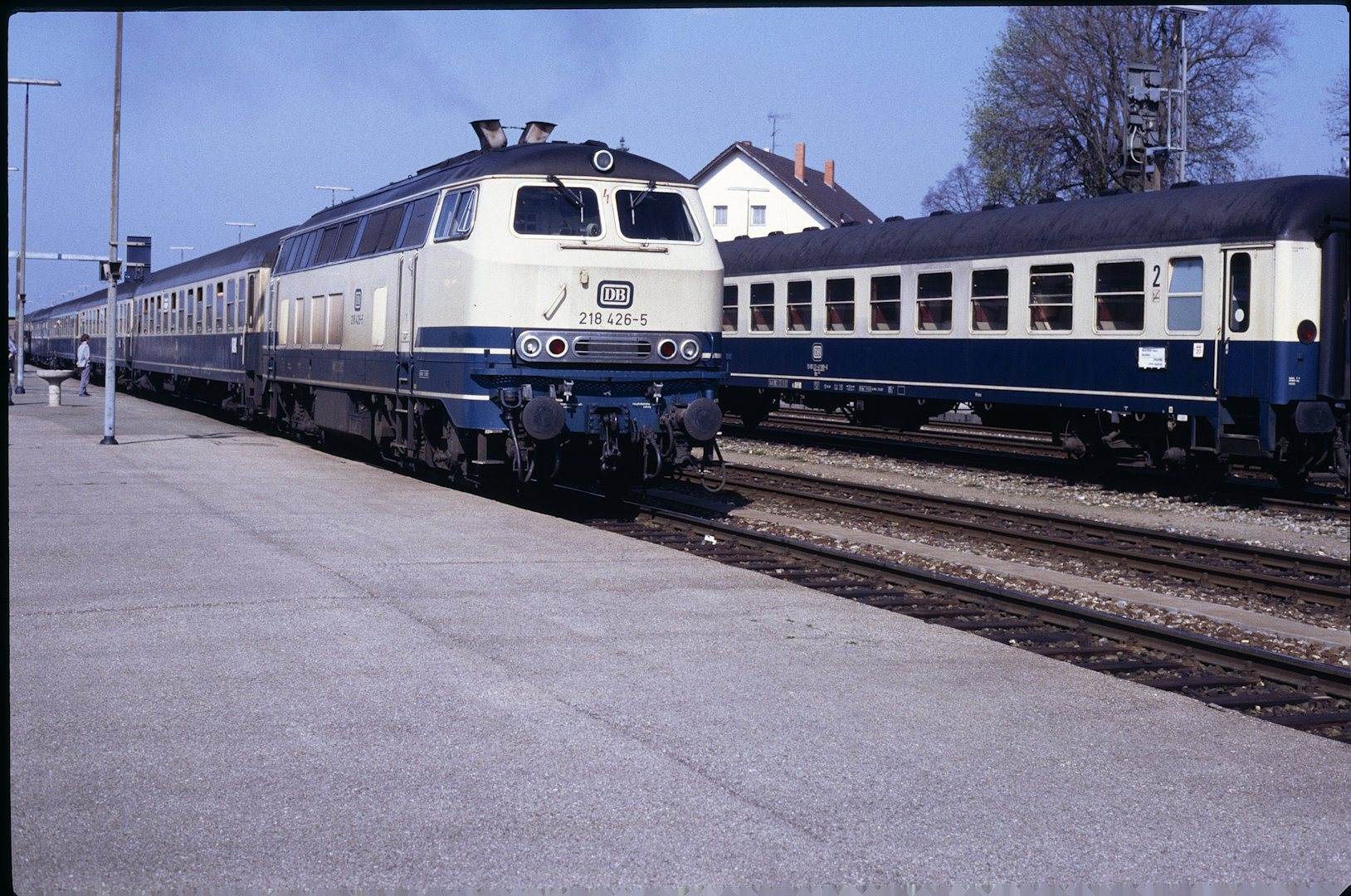 DB 218 447 (1980, München-Donnersbergerbrücke, (mit 210 xxx), info:Lok ist unscharf) |